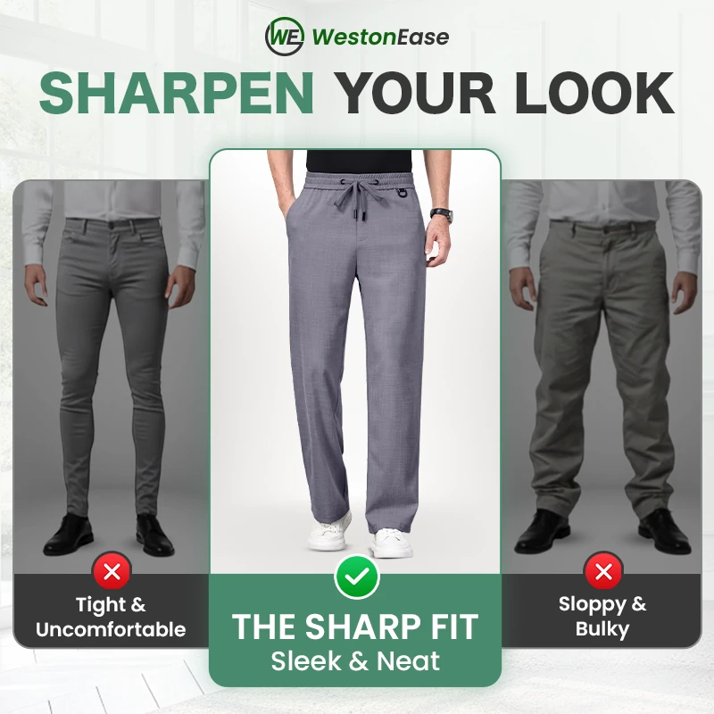 End the struggle with ill-fitting trousers. WestonEase delivers a sharp, custom-feel silhouette that respects your frame - no pinch, no sag. Ready in seconds, polished for hours.